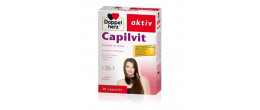 Doppelherz® aktiv Capilvit est une combinaison spéciale d'extrait de sorgho, d'huile de germe de blé, de biotine, de vitamine B6, d'acide pantothénique, de zinc et de cuivre, élaborée pour des cheveux forts et en bonne santé.