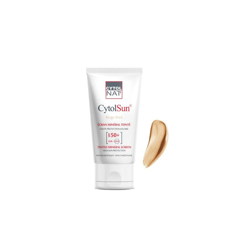 CytolSun écran minéral teinté SPF 50+ est un soin dermatologique photoprotecteur spécialement formulé pour les peaux sensibles normales à mixtes aux filtres solaires chimiques.