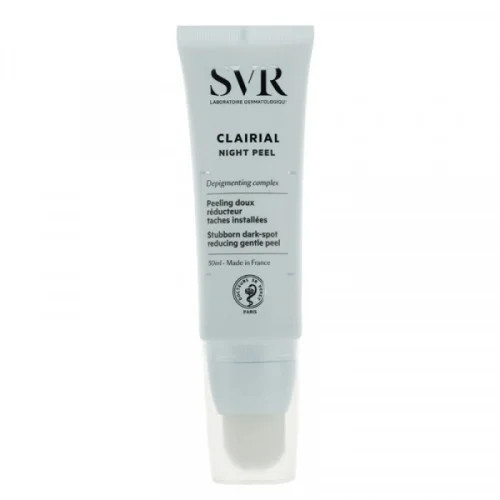 Un peeling permet d’agir sur les taches. En revanche, il peut être irritant ce qui peut entrainer l’apparition de nouvelles taches. Clairial Night Peel associe la douceur à une action kératolytique pour un moment cocooning à la maison.