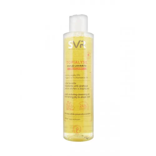 SVR Topialyse est une huile formulée pour nettoyer, nourrir et protéger la peau des effets desséchants de l'eau et du calcaire. Cette dernière est destinée aux peaux à tendance atopique sèches voir même très sèches. Tous genres et tous âges peuvent l'utiliser en effet, enfants, bébés et adultes ont en le droit.